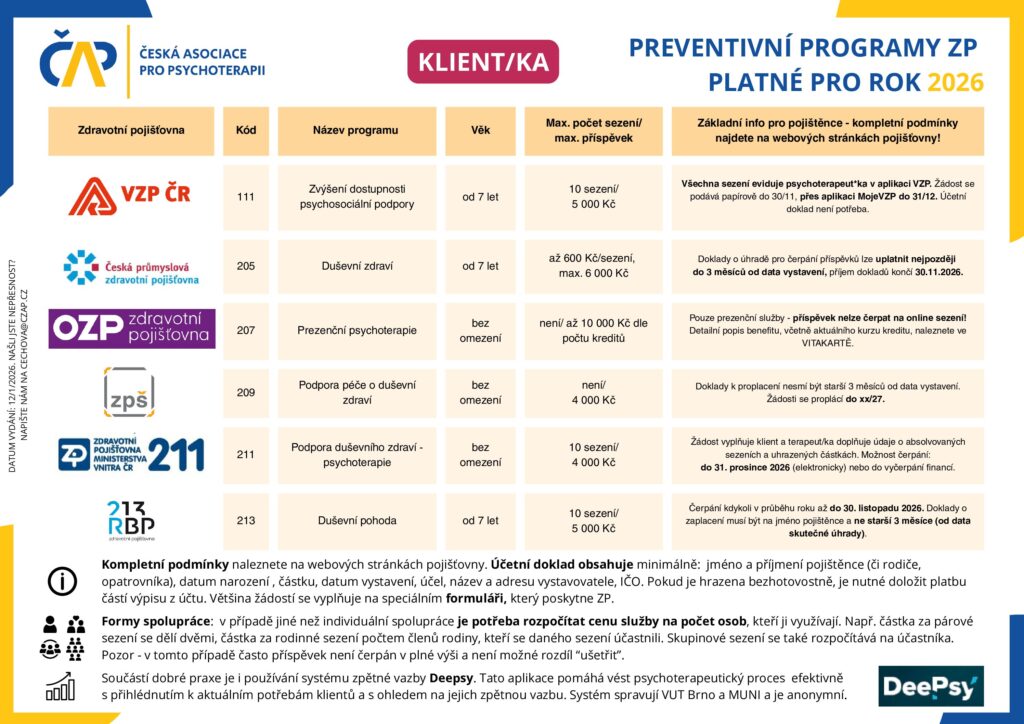 aktualizováno na 22 února, 202616 ledna, 2026Uncategorized Příspěvky na psychoterapii pro rok 2026 admin Zanechat komentář na Příspěvky na psychoterapii pro rok 2026